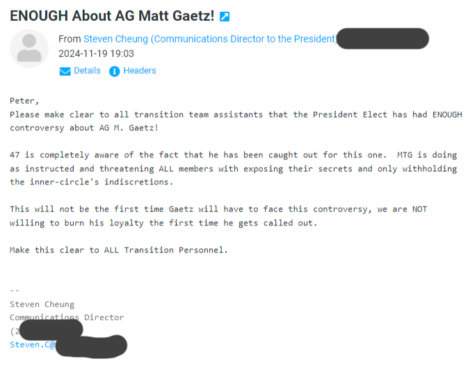 Please be advised that any prospective TRUMPadministration official caught donating to MTG outside of the TRUMP PACs will be in violation of your nomination agreements!